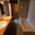 Les équipements de salle de bains comprennent les toilettes séparées, la baignoire et la douche, ainsi que le sèche-cheveux et les draps de bain.